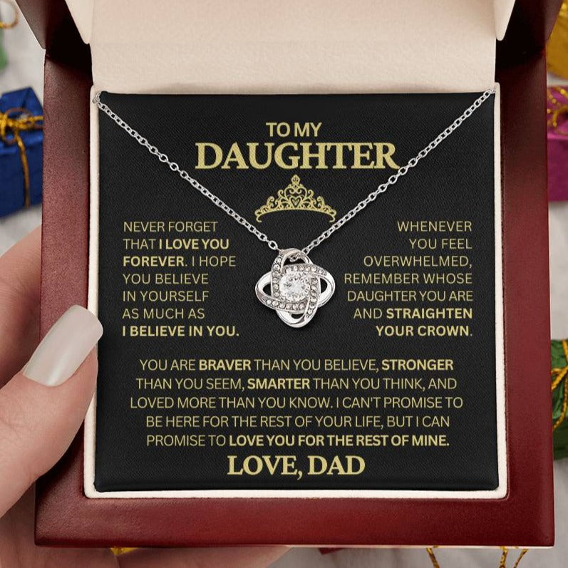 Show your daughter how much she means to you with our 'Never Forget That I Love You' necklace. This delicate and meaningful piece features an elegant design and a heartfelt message, making it a cherished reminder of your unconditional love.