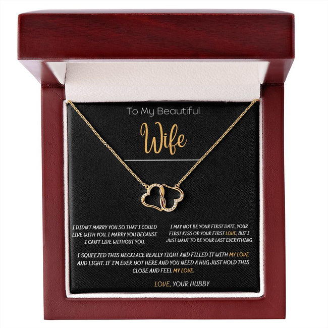 Surprise your beautiful wife with the Everlasting Love Necklace, a stunning symbol of your eternal affection. Crafted with precision and care, this necklace features intricate details that reflect the depth of your love. Whether it's for a special occasion or just because, this timeless piece will remind her of the everlasting bond you share. Let your love light up her world with the Everlasting Love Necklace.
