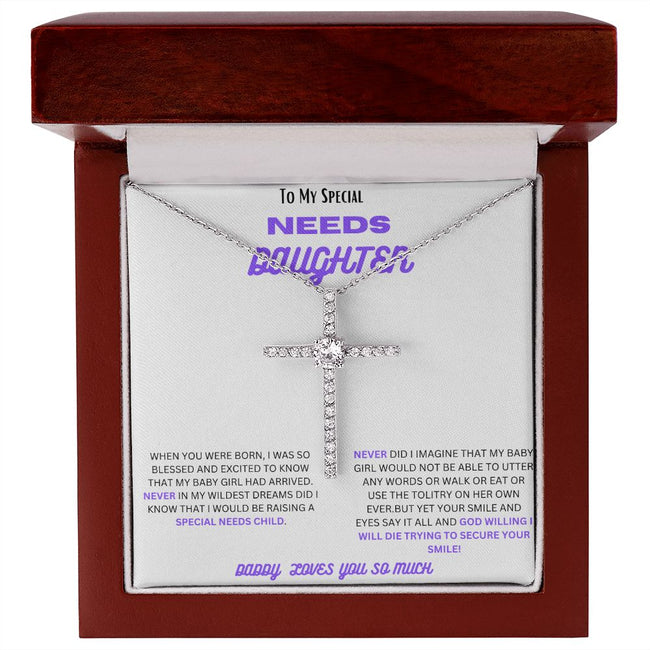 Surprise your special needs daughter with our CZ Cross Necklace! Crafted with care and adorned with sparkling CZ stones, this necklace carries the sentiment of a parent's love and support. Let her wear it with pride and know that she's cherished.
