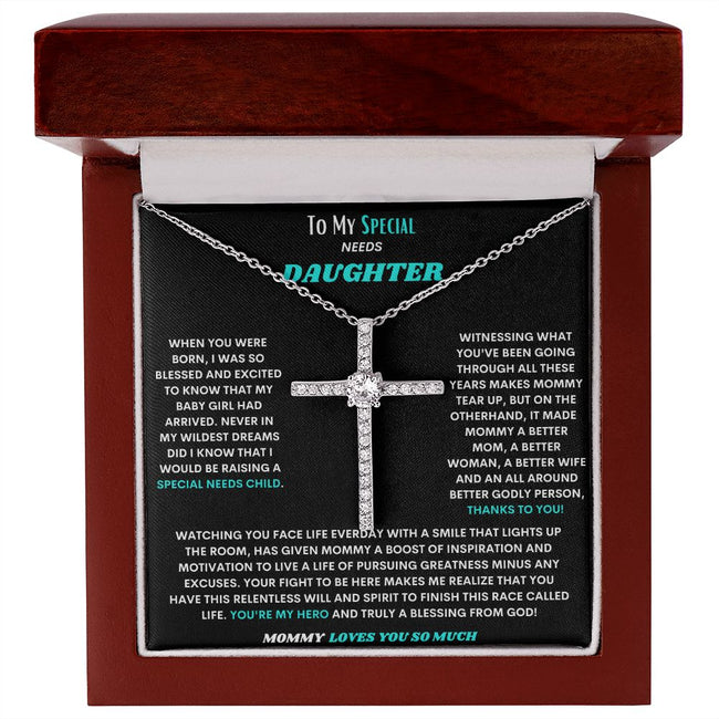 Surprise your special needs daughter with our Love Only CZ Cross Necklace! Adorned with sparkling CZ stones and crafted with care, this necklace carries the message of love and support. Let her wear it proudly and know she's loved unconditionally.