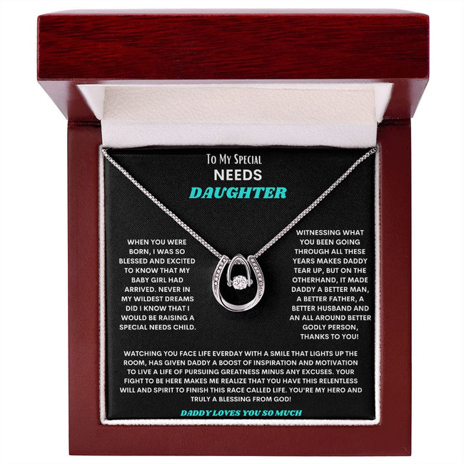 Surprise your rockin' special needs daughter with our Lucky Love Necklace! Crafted with care and adorned with lucky charms, this necklace carries the sentiment of a parent's love and support. Let her wear it with pride and know that she's cherished.